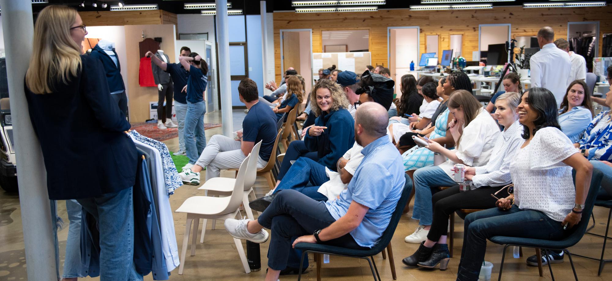 So we make clothes that make us comfortable. We make clothes that let us breathe and stretch and move and think. We make clothes that let us work. And we have fun here. Want to join?