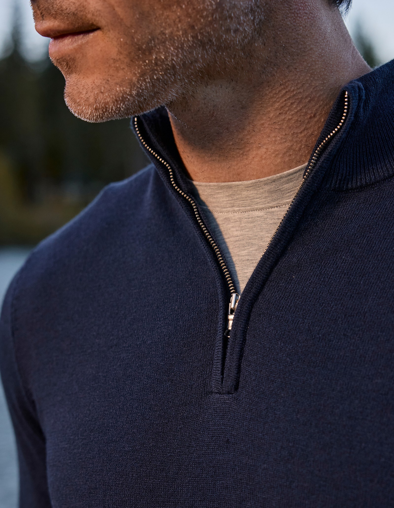 The Heritage Sweater Collection was built around one idea: create the perfect fall sweater. That meant a yarn that felt soft from day one, moved easily, and looked sharp without being overly delicate. The result is a premium blend of Extra Fine Merino Wool and Thermolite®, engineered to offer natural breathability, moisture control, and warmth without the bulk.