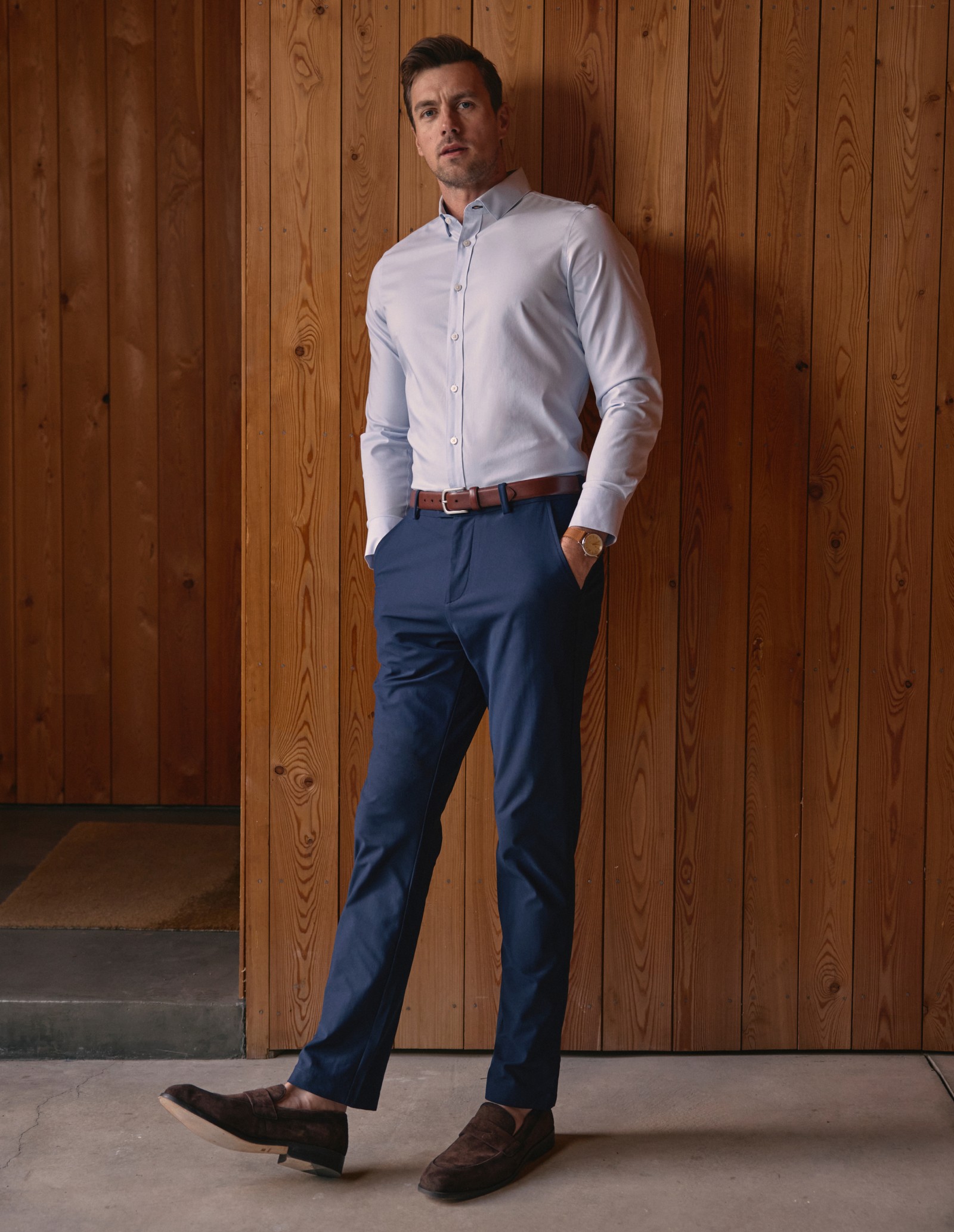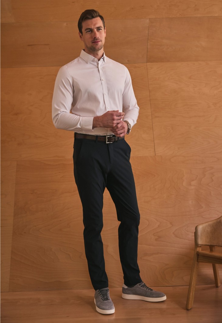 Unlike traditional cotton shirts, the Hilton incorporates wrinkle-resistant technology for easy home laundering and a polished look without dry cleaning. The fabric has a subtle twill weave, adding texture and structure, while the stretch component ensures ease of movement. It’s a modern upgrade to a menswear staple—versatile, breathable, and intentionally engineered to feel better with every wear.